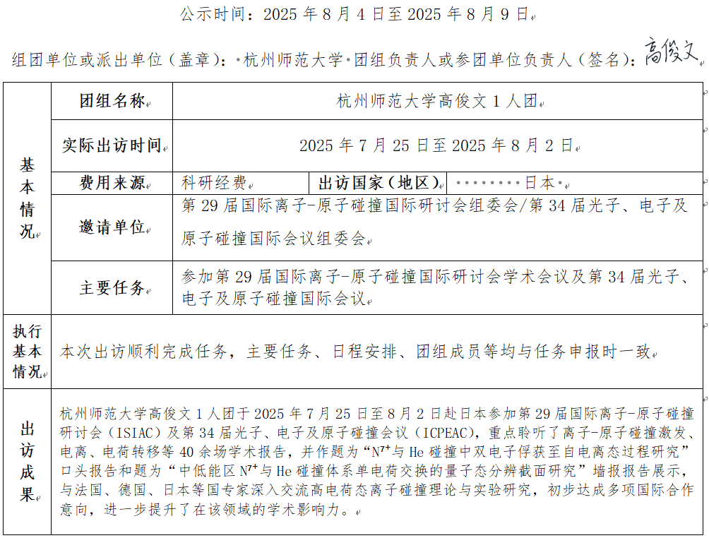 sm调教 高俊文1人团于2025年7月25日至8月2日赴日本参加学术会议,在外停留 9天。此行主要任务、日程安排、团组成员等均与任务申报时一致。